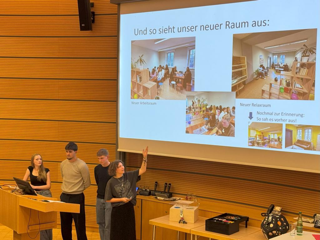 Am 23.09.2025 standen vier stolze Schülerinnen und Schüler der FOSBOS Hof auf der Bühne im Audimax der Hochschule Hof und präsentierten das Projekt der Schule „Vom SMV-Raum zum Raum für ALLE“. Gemeinsam hatten es alle Mitglieder der FOSBOS Hof geschafft, aus dem sehr unübersichtlichen SMV-Raum mit veraltetem Mobiliar sowie einem angrenzenden Abstellraum einen wohnlichen Gemeinschaftsraum und einen Brotzeitraum zu gestalten. Dabei wurde die Schule durch die Firma Lamilux unterstützt, die sowohl bei der Planung als auch bei der Umsetzung half. In Zusammenarbeit mit dem Schulparlament stellte man fest, dass mehr Struktur, aber auch eine zeitgemäßere Gestaltung angestrebt werden sollten. Frische Farbe, neues Mobiliar und liebevolle Accessoires sorgen nun für eine gemütliche Atmosphäre, die zum Arbeiten, Entspannen und Genießen einlädt. Unser Preisgeld in Höhe von 300 Euro wird uns dabei helfen, einige weitere schöne Gegenstände zu finden, die beide Räume weiter schmücken und noch wohnlicher gestalten.