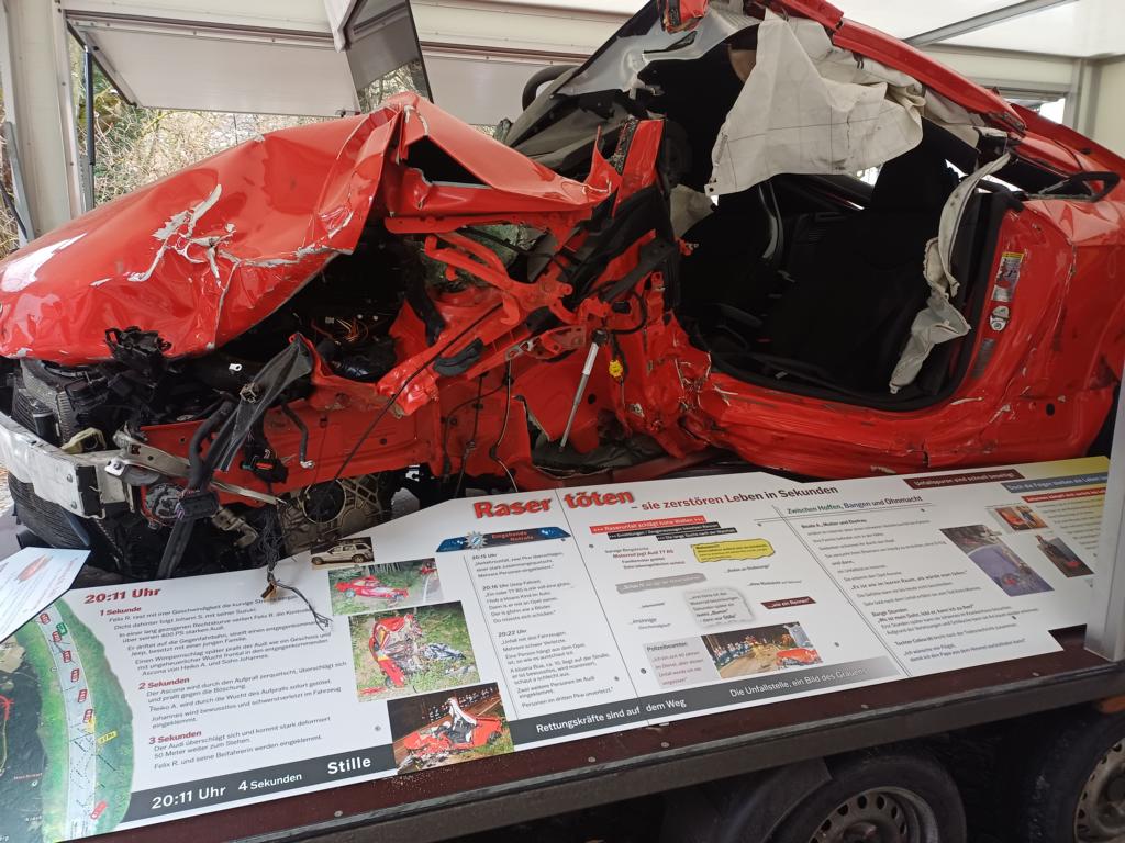 Die Schülerinnen und Schüler wurden aktiv in die Veranstaltung eingebunden: Sie konnten selbst mögliche Folgen einschätzen, Fragen stellen und ihre Meinung äußern. Zum Abschluss wurden die Fahrzeuge besichtigt, die an dem Rennen beteiligt waren. Diese sind auf einem Anhänger ausgestellt und in ganz Bayern unterwegs, um über die Gefahren von illegalen Straßenrennen aufzuklären.