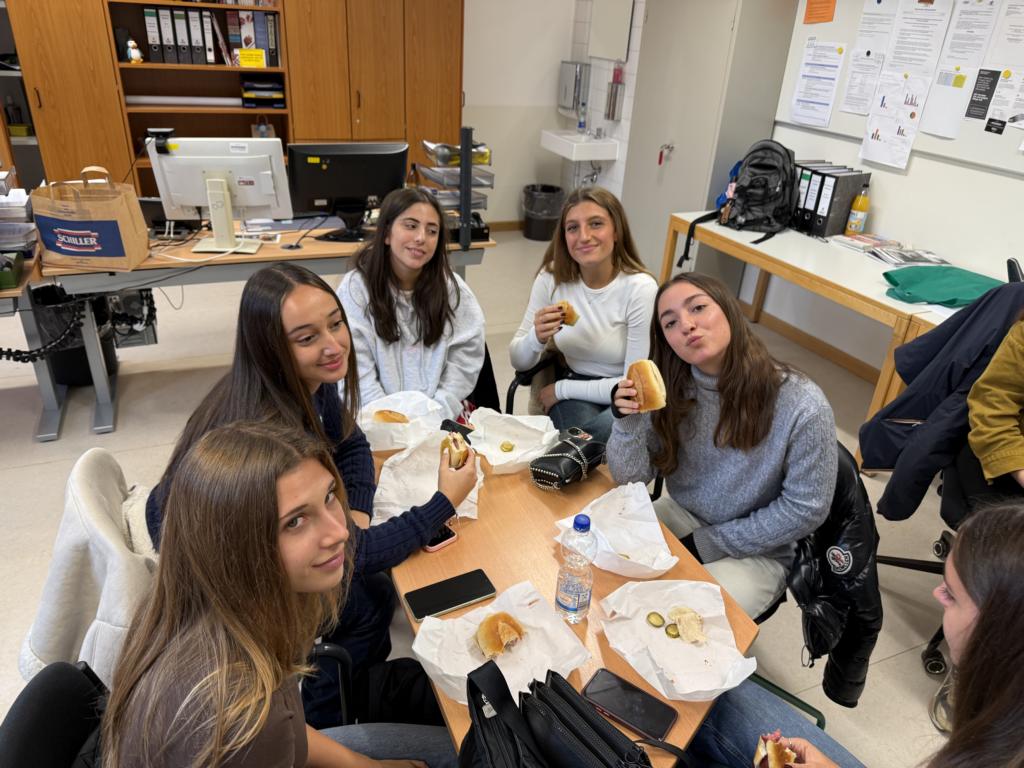 Dass aber außer geistigen Erkenntnissen auch körperliches Wohl nicht zu kurz kommen durfte, war ebenfalls sowohl Gastgebern als auch Besuchern bewusst. Bereits am ersten Tag testeten unsere italienischen Gäste mit Begeisterung die fränkische Gastronomie an der Schule. Mehrmals in dieser Woche ließen sie sich die Wiener, Käsewiener und Bauern von unserem Hausmeister Jürgen Zimmermann schmecken. Ein ganz besonderes Genusserlebnis war dann auch der Test der Hofer Rindfleischwurst zur Brotzeit. Unsere Italiener waren begeistert von der bislang unbekannten Wurst, die einzigartig und typisch für die Region ist. Warum da unbedingt Essiggurken dabei sein sollten, konnte sich ihnen allerdings nicht erschließen.