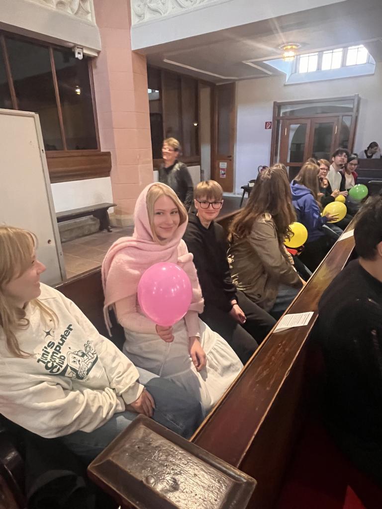 „Schule ist wie ein Rockkonzert!“ – unter diesem Motto stand die Ansprache. Freundschaften schließen, Gemeinschaft erleben, Vielfalt gestalten, mal planen, mal improvisieren – all das gehört dazu. Bildung wie Musik als Grundton einer freien und offenen Gesellschaft zu verstehen, die ihre Energie aus der Würde jedes einzelnen Menschen schöpft, war die zentrale Botschaft. Besonders eindrucksvoll wurde dies in einer Mitmach-Aktion: Schülerinnen und Lehrkräfte schrieben auf bunte Luftballons, was ihnen Kraft gibt und sie motiviert. Als die Ballons durch das Kirchenschiff schwebten, war die Energie buchstäblich greifbar.