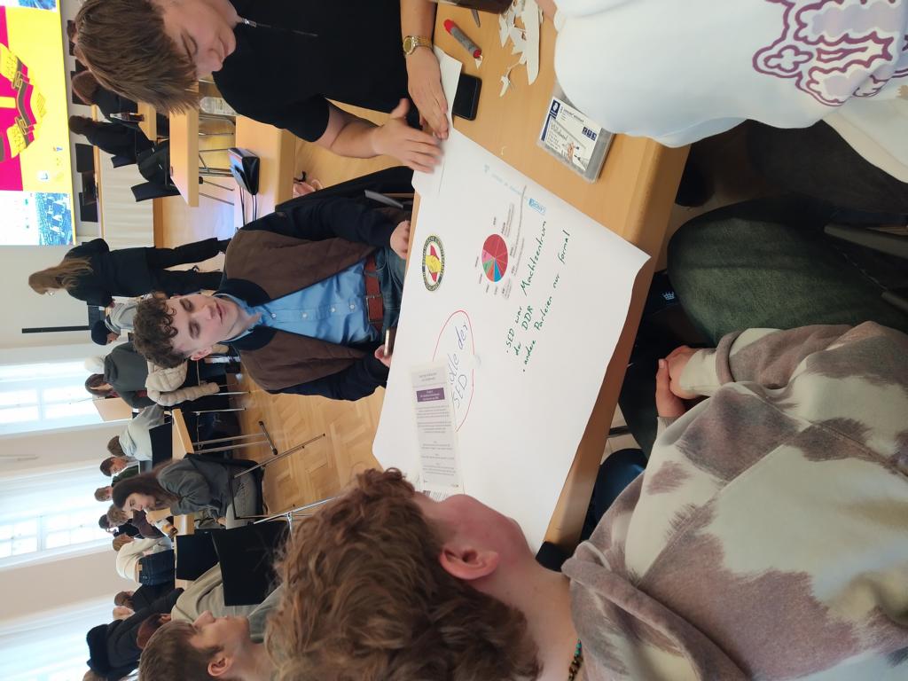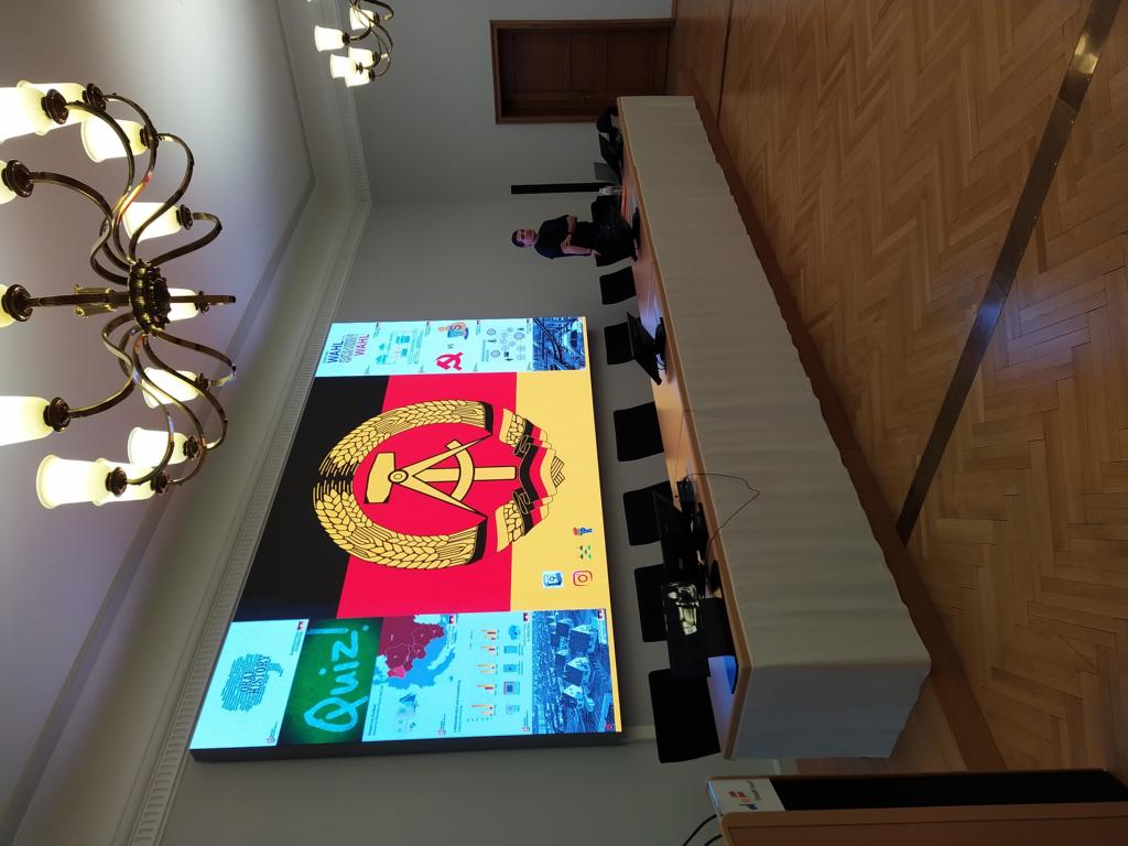Am 22.10.2025 fand im Rathaus Hof erneut der Workshop „Zwischen Wahlschein und Scheinwahl“ der Deutschen Gesellschaft statt. Um einen Einblick in Staat und Gesellschaft der DDR zu erhalten, der über den schulischen Geschichtsunterricht hinausgeht, nahm die Klasse F11AW der FOSBOS Hof teil. Der herzlichen Begrüßung von Oberbürgermeisterin Eva Döhla folgte ein ausführlicher und spannender Vortrag von Dr. Marius Kleinknecht, der das Staatskonstrukt DDR ausführlich erklärte. Im Anschluss erarbeiteten sich die Schülerinnen und Schüler in Gruppenarbeit vertiefte Informationen zu bedeutsamen Teilbereichen wie der Planwirtschaft, den Wahlen und dem Grenzschutz. Den spannenden Abschluss bildete ein Zeitzeugengespräch mit Werner Mergner (ehemaliger Redaktionsdirektor der Frankenpost) und Gerd Naumann (Historiker und wissenschaftlicher Mitarbeiter am Vogtlandmuseum Plauen), die die Zeit des Mauerfalls aus westdeutscher und ostdeutscher Perspektive eindrücklich schilderten.