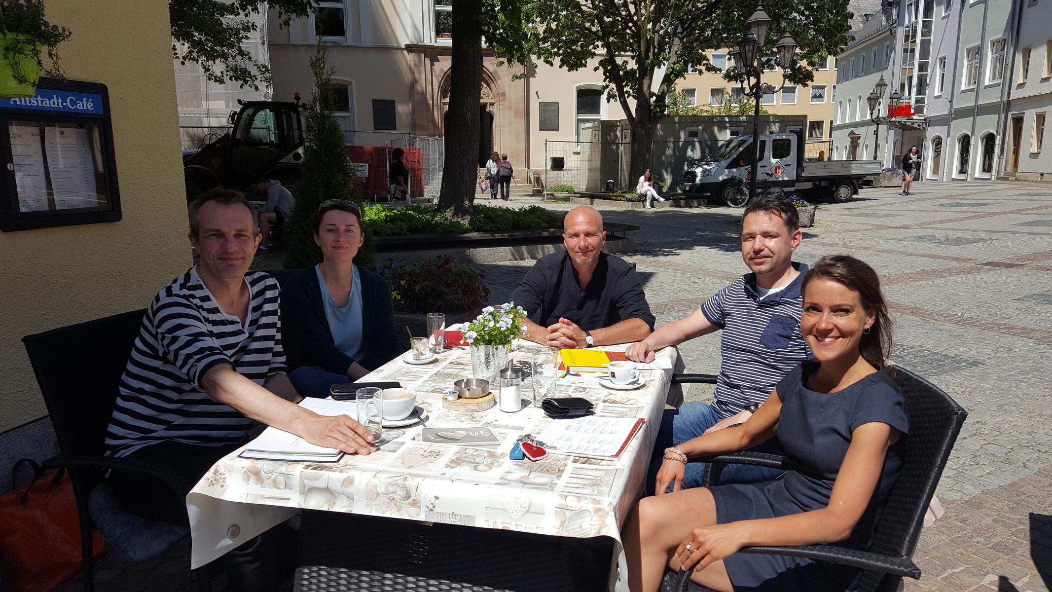 rechts von vorne: StRin Anne Geyer, StR Jürgen Schmid, designieter Leiter des Jungen Theaters Hof Marco Stickel